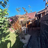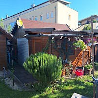 Die WC-Anlage befindet sich in der Gartenanlage.