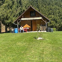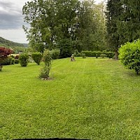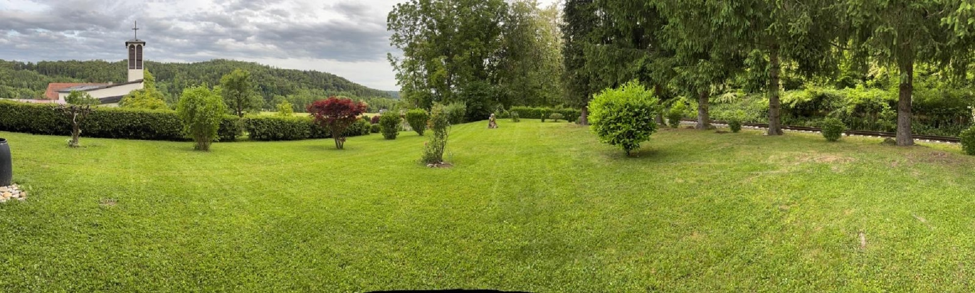 Wunderschöner gepflegter Garten mit Sträuchern, schöne Wiese, sehr gepflegtes Gartenhaus.