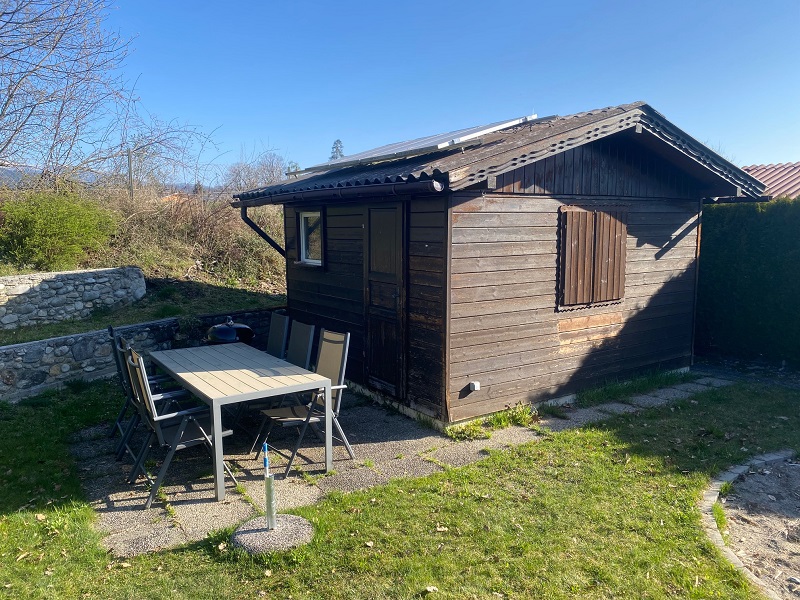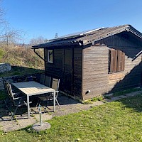 Garten in der Gartenanlage Weyern - Gartenhütte mit einem kleinen Geräteschuppen.