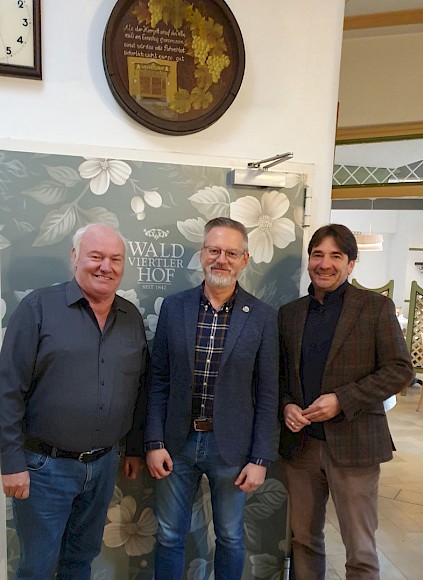 Am Foto v.l.: Wilbert Leitgeb (Präsident LV NÖ), Präsident Rohrhofer, Franz Gruber (GF Garten Tulln)