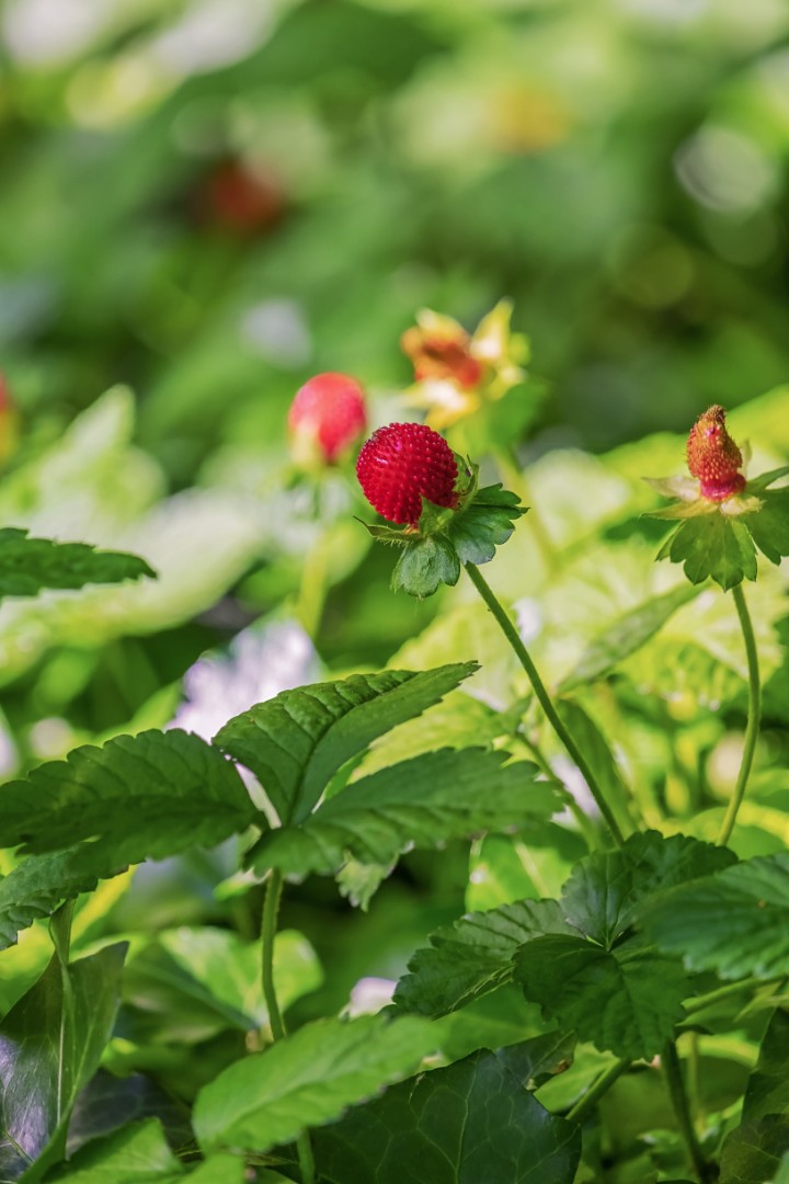 Wissenswertes: Die Indische Scheinerdbeere sieht der Walderdbeere zum Verwechseln ähnlich. Allerdings blüht sie gelb statt weiß; und ihre Früchte stehen aufrecht, sind innen weiß und schmecken nach nichts. Im Siedlungsbereich ist sie als Bodendecker beliebt. Allerdings verbreitet sich die starkwüchsige Pflanze häufig in benachbarten Wäldern und wird dort zur Gefahr für die Walderdbeere und andere Kräuter.
