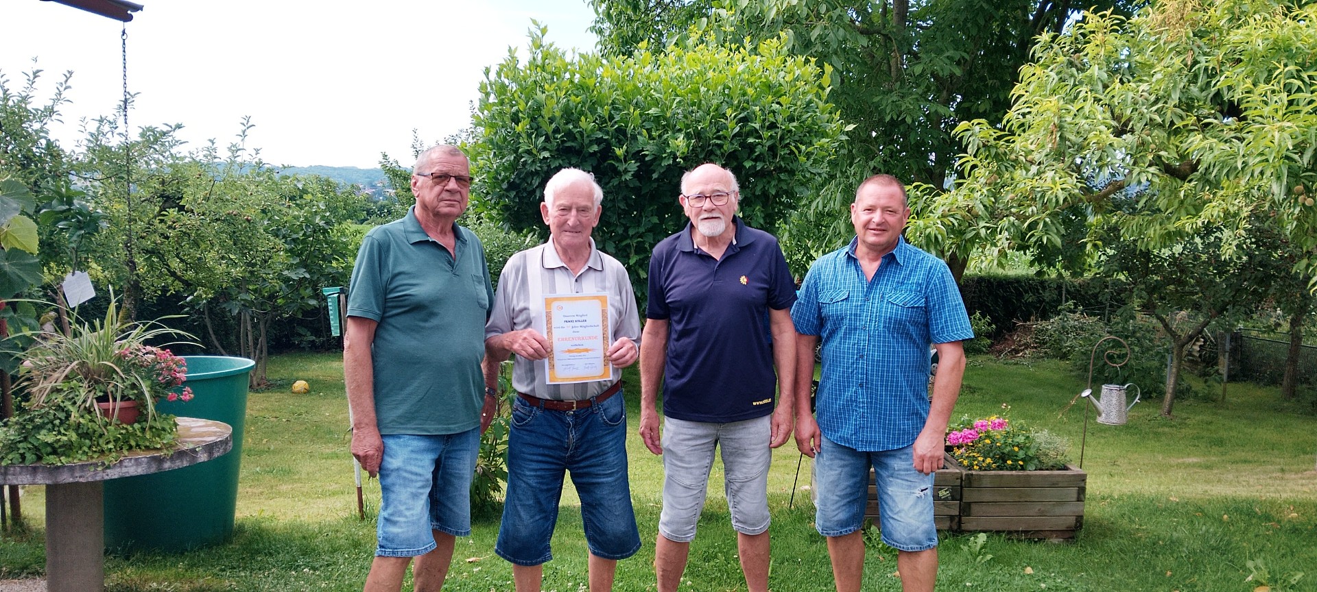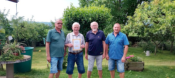 Als Zeichen der Wertschätzung und des Dankes überreichten Obmann Rudi Heschl, Obmann-Stellvertreter und Schriftführer Franz Radl sowie Rechnungsprüfer Josef Potzinger eine Ehrenurkunde und ein Geschenk.