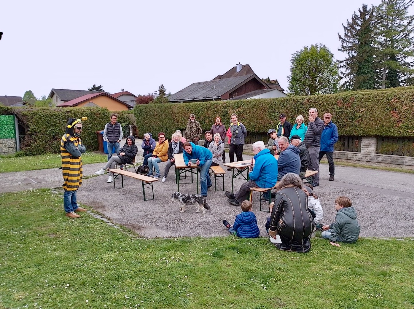 Waltraud Novak und Dominik Linhart von GLOBAL 2000 brachten allen Workshopteilnehmer:innen noch viele weitere Ratschläge für klimafittes Gärtnern näher: Mit viel Witz und Charme gab Dominik Linhart im Wildbienenkostüm den Stellvertreter einer wichtigen Gruppe, die im „Nationalpark Garten“ gefördert werden soll. Tipps zum Anlegen einer Blühwiese, Beispiele zur Integration wertvoller Lebensraumstrukturen im Garten und die Beantwortung vieler Fragen der Kleingärtner:innen rundeten den Workshop ab.