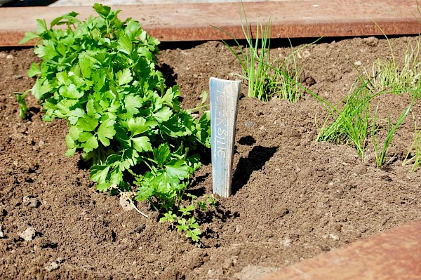 Die Petersilie ist ein Doldenblütler und verträgt sich nicht mit ihresgleichen. Gut eignen sich als Beetnachbarn Radieschen, Mangold, Spinat oder Tomaten. Karotten und Kopfsalat sollten hingegen nicht neben die Petersilie gepflanzt werden.