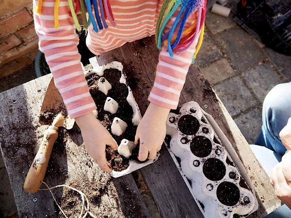 Tipp: Für die Aussaat brauchen Sie nicht eigens Gefäße oder Anzuchttöpfchen zu kaufen. Sie können für kleine Samen auch leere Eierkartons, Klopapierrollen oder Joghurtbecher verwenden.
