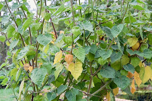 Die Physalis ist recht anspruchslos, was Böden anbelangt. Etwas reichhaltige Komposterde hilft ihr beim Gedeihen; bei Trockenheit braucht sie Wasser; und Staunässe sollte vermieden werden. Wer mehrere Pflanzen nebeneinander einsetzt, lässt zwischen ihnen am besten rund einen Meter Platz lassen – die Sträucher werden recht üppig und bis zu zwei Meter hoch.