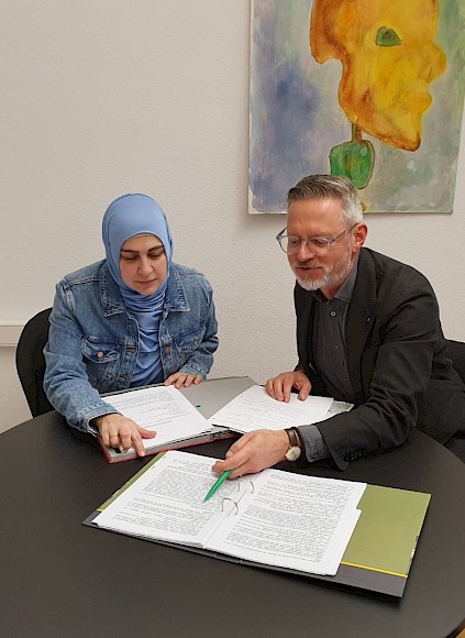 Foto: Betül Aktas aus der Verbandszentrale und Präsident Rohrhofer