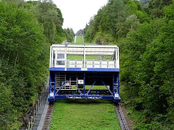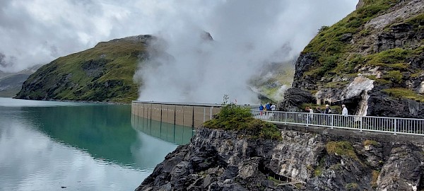 Nach einer sehr interessanten Führung brachten Transferbusse alle Teilnehmer*innen hinauf zum größten Schrägaufzug Europas; und nach der Fahrt mit dem Lift ging es mit Pendelbussen zum Staudamm Mooserboden.